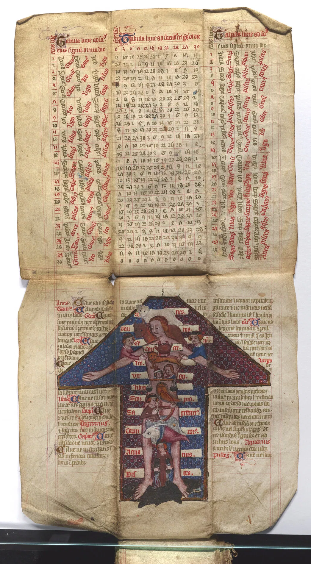 - A 15th-century folded medical/zodiac almanac, which probably belonged to a doctor based in northern England. Folded up, it could be worn on the belt